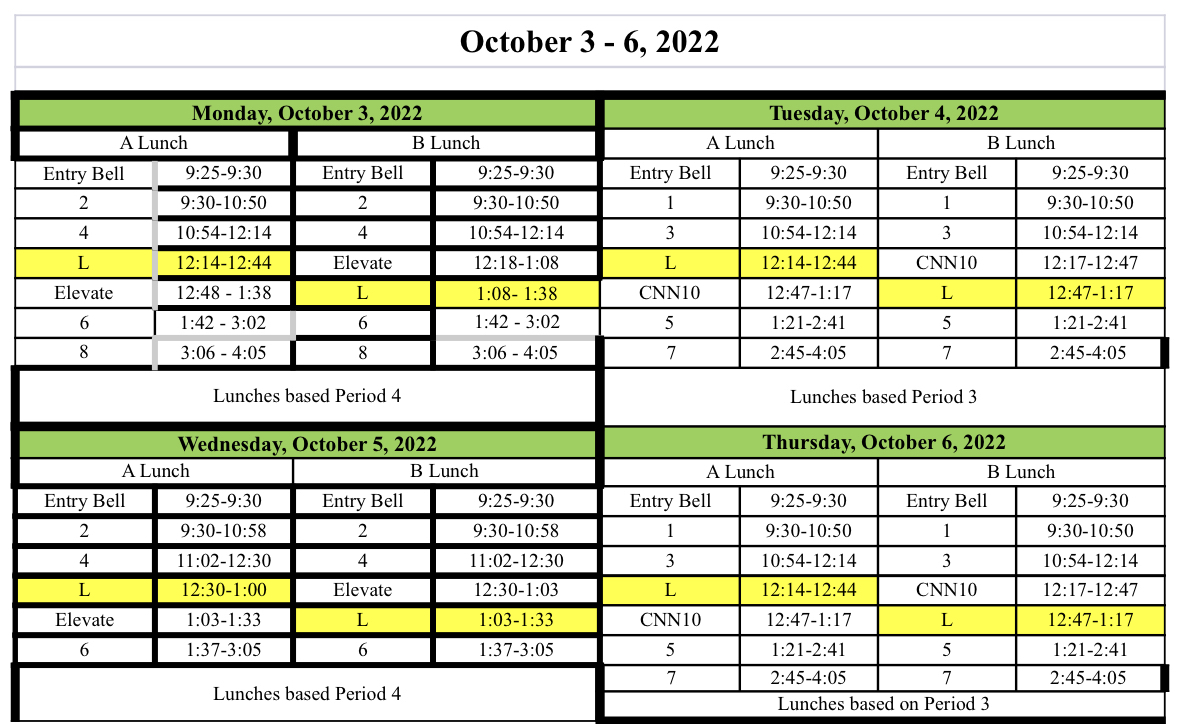 2022 2023 Student Bell Schedule